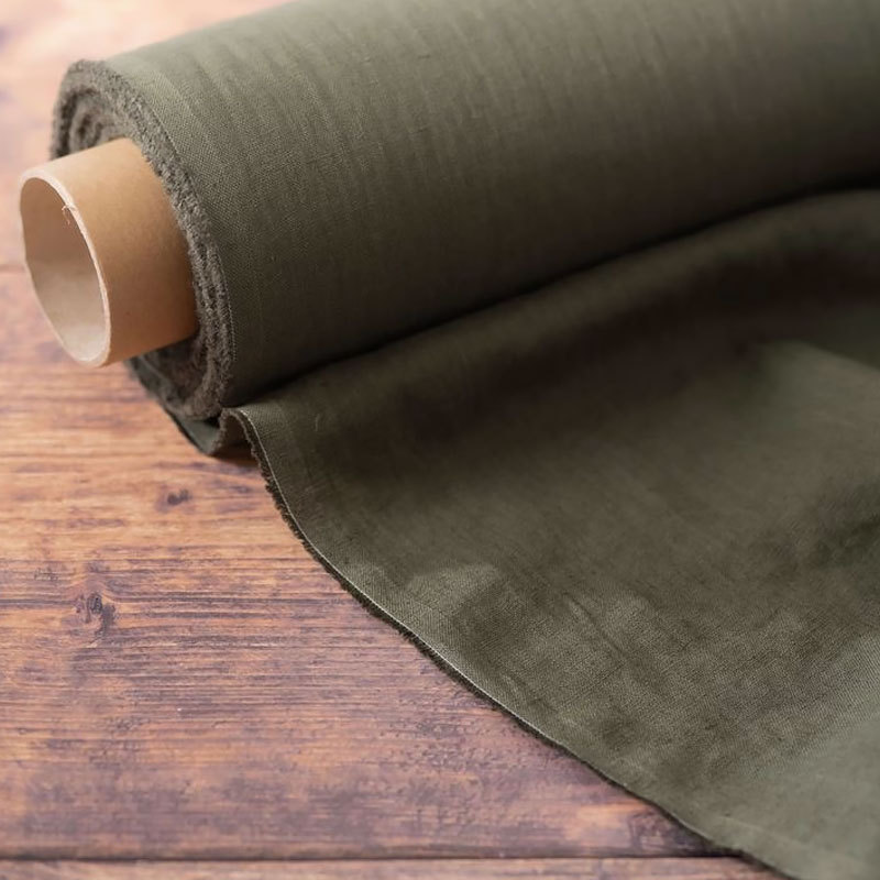 Olive Green 100% Washed Linen Fabric (170gsm) – Soft, Breathable & Natural Medium-Weight Linen