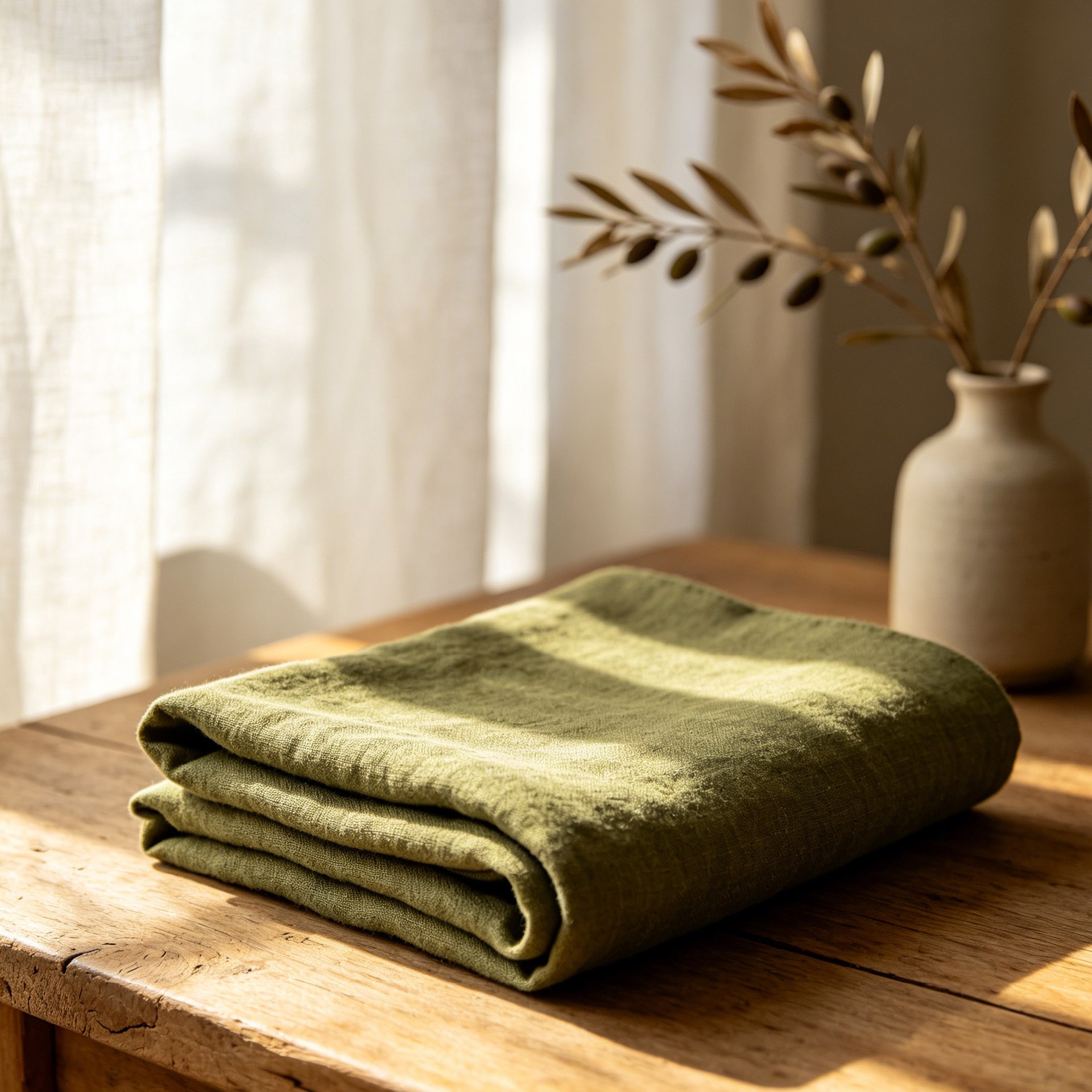 Home Textiles: Bed sheets, Pillowcases, Curtains, Cushion covers, Tablecloths, Napkins, Tea towels, bedding, and throw pillows – the olive green hue adds a warm, natural touch to any space.