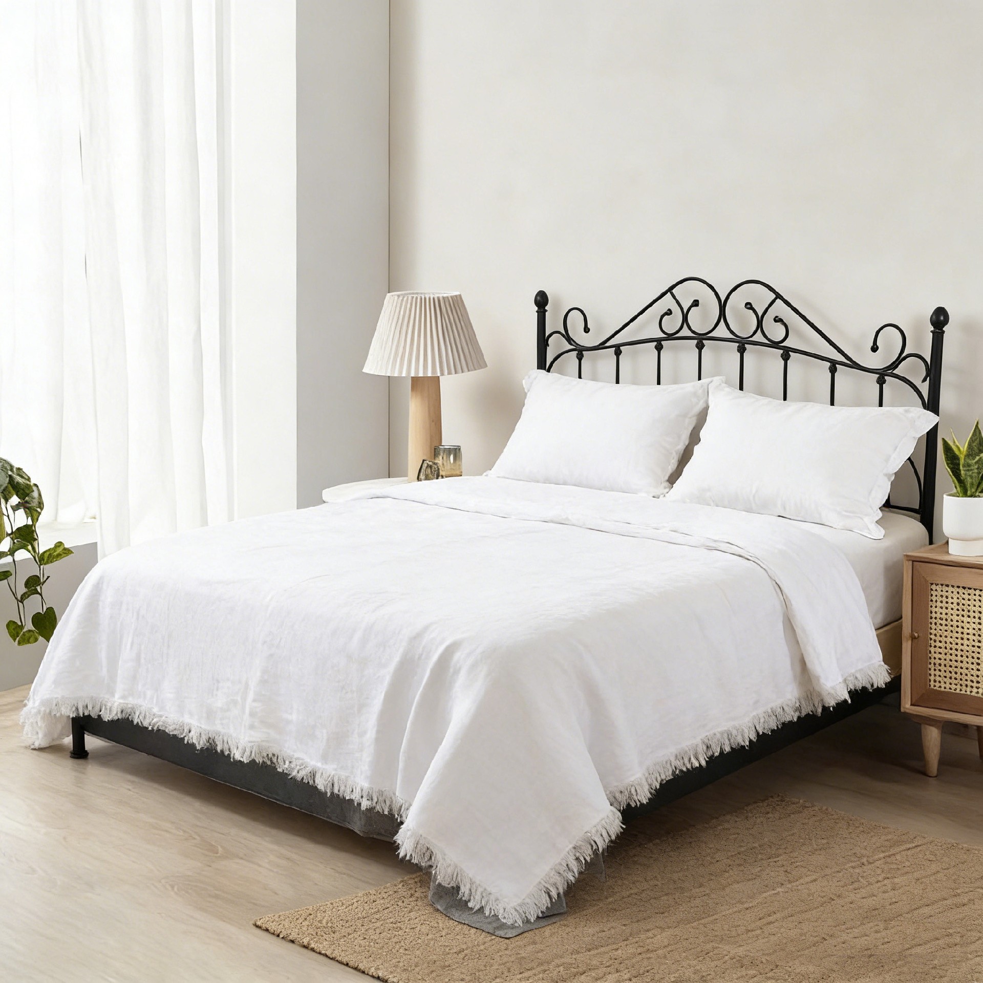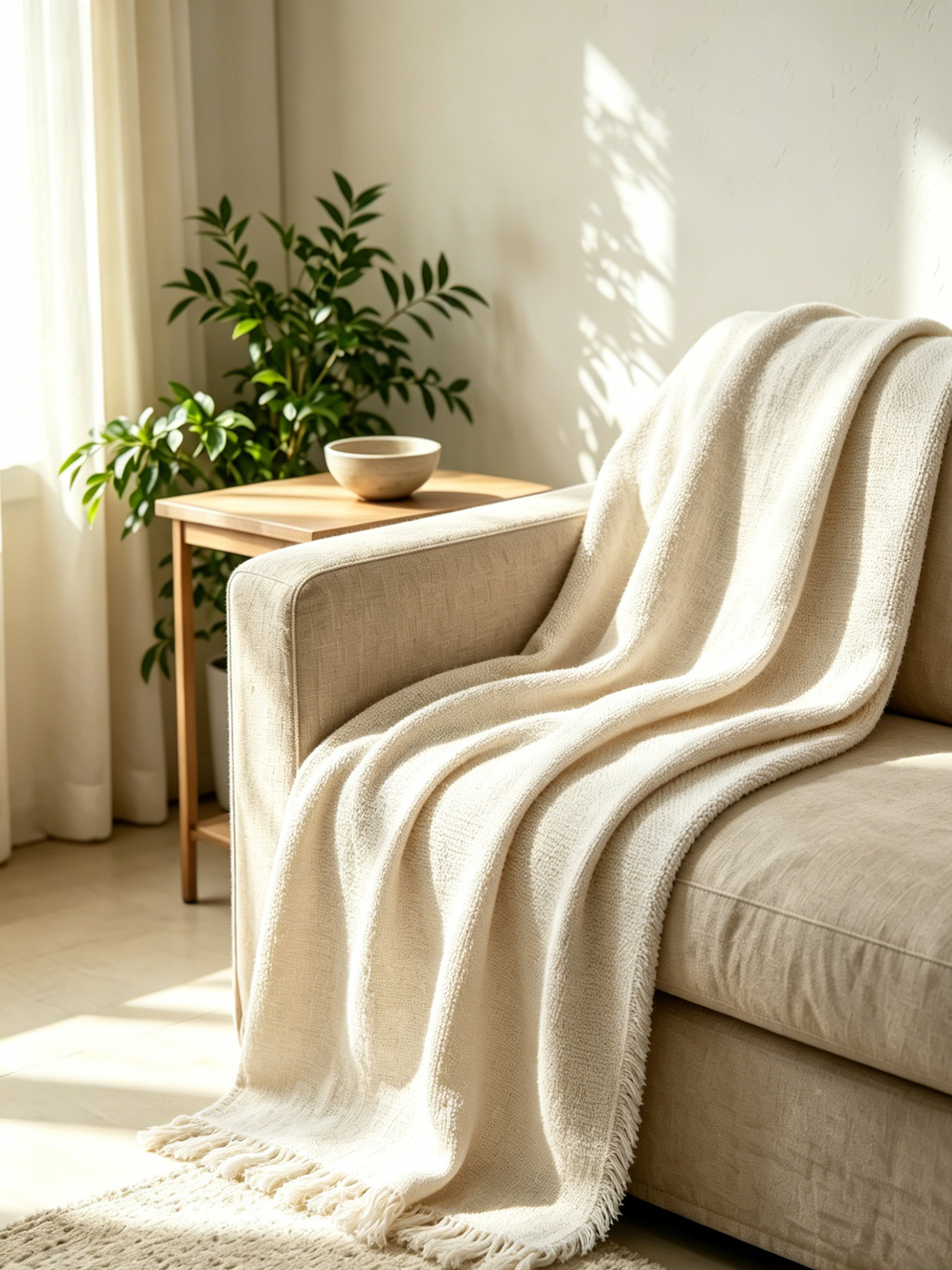 Designed in a pure, cloud-like white hue inspired by soft coastal skies, this throw complements any coastal, boho, farmhouse, or modern living space. Its solid color palette with delicate frayed edges adds a quiet, laid-back charm that pairs beautifully with both neutral and light-toned interiors. The luxurious drape stays neatly in place when styled as a coastal throw for sofa living room decor, adding instant brightness and sophistication to your home.