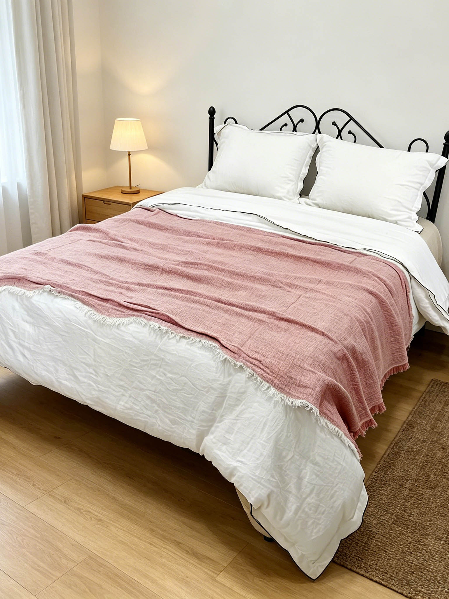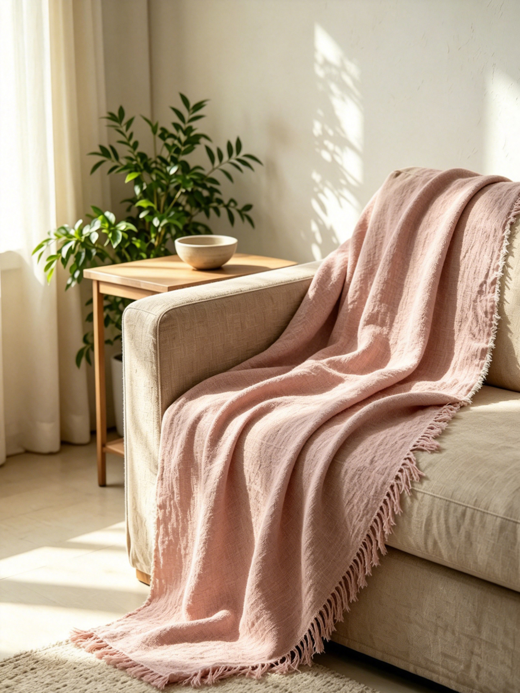 Dusk Rose Linen Throw – Premium Coastal Linen Throw for Sofa Living Room Decor