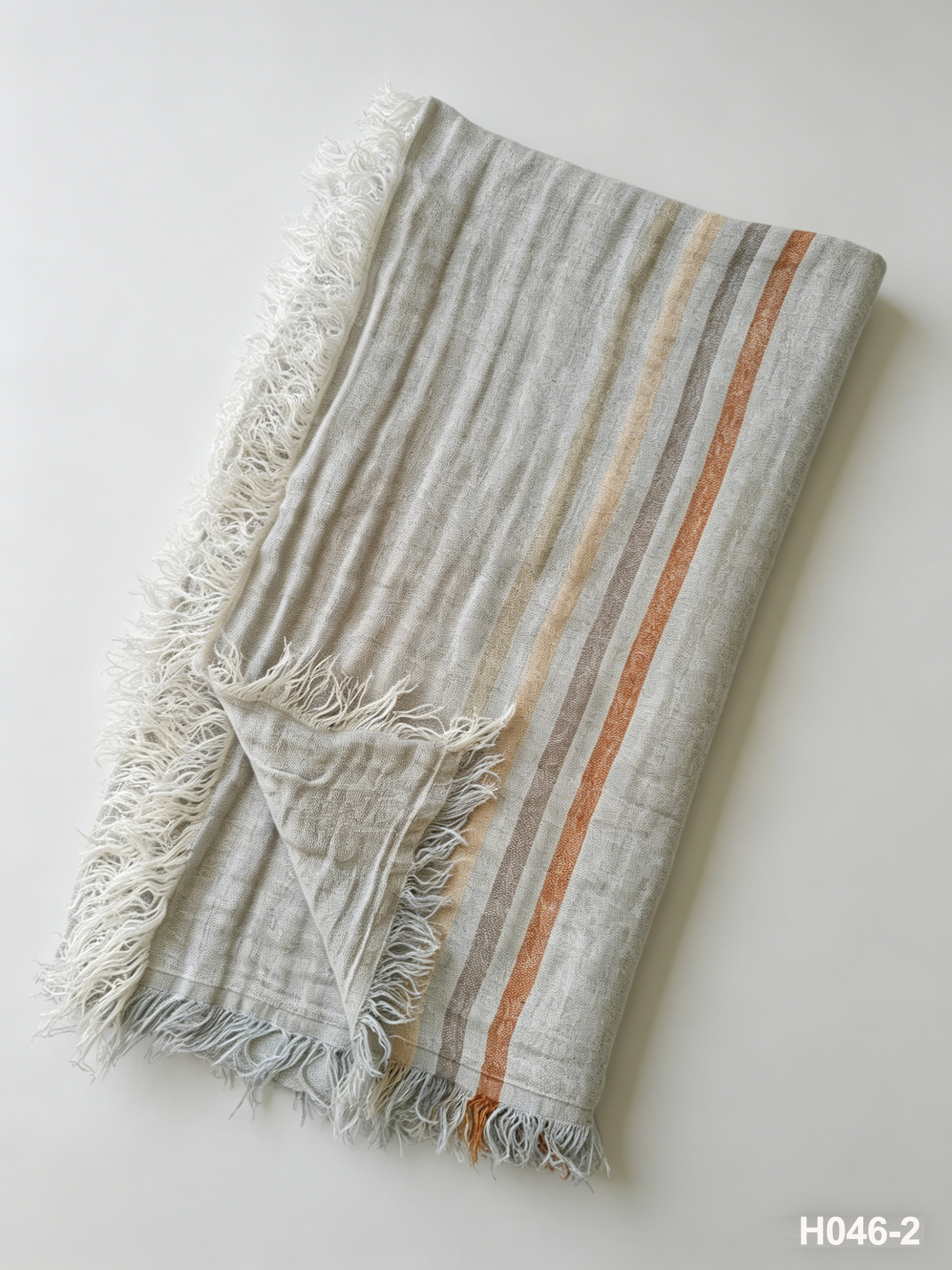 Designed with a soft grey base accented by warm terracotta, taupe, and cream stripes, inspired by the earthy colors of a coastal sunset, this throw complements any coastal, boho, farmhouse, or modern living space. The subtle contrast of the stripes adds a quiet, laid-back charm that pairs beautifully with both neutral and warm-toned interiors. The lightweight drape stays neatly in place when styled as a coastal throw for sofa living room decor, adding instant warmth and serenity to your home.