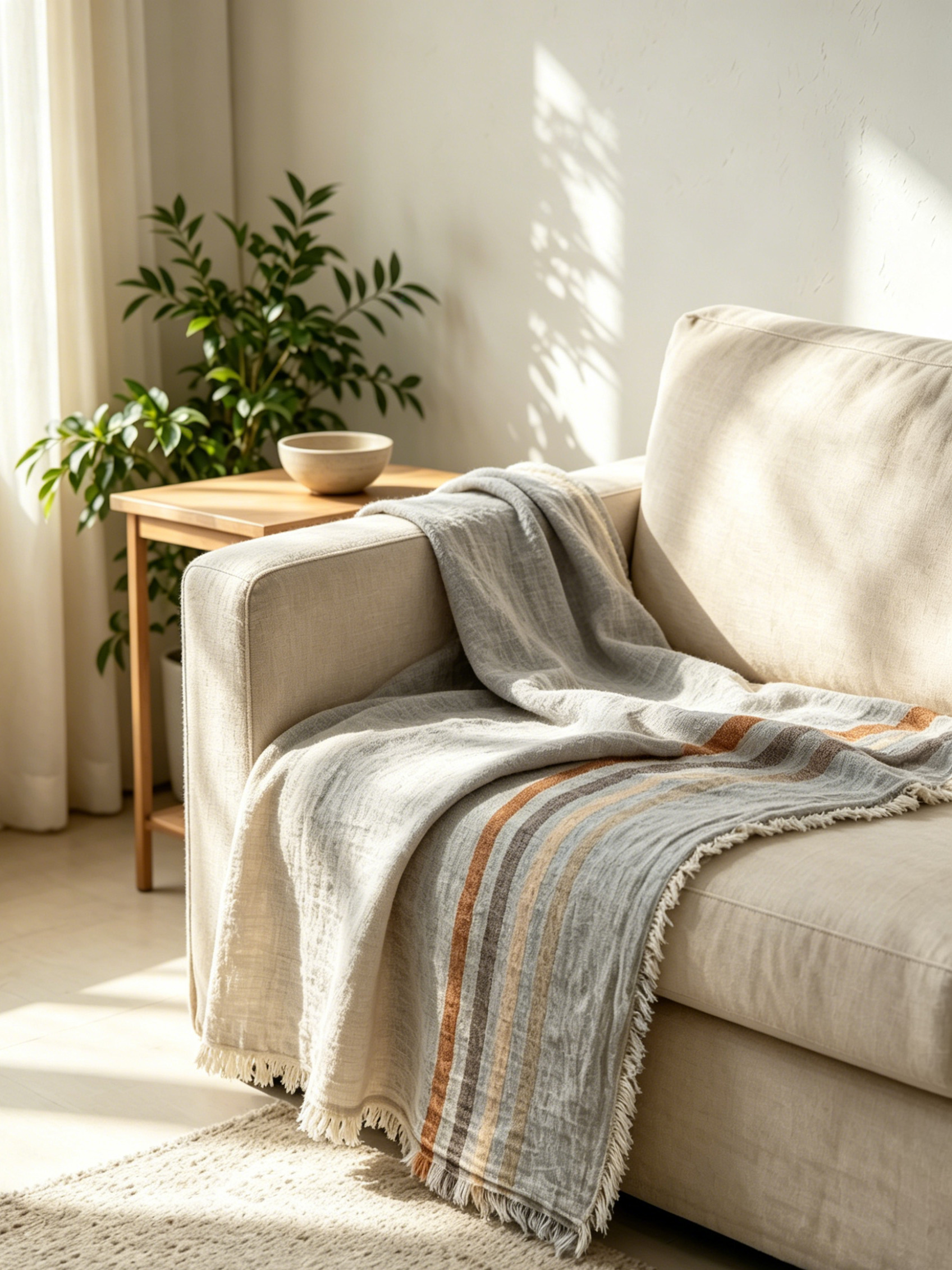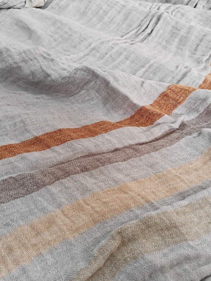 Bring the warm, serene glow of a coastal sunset to your home with the Earth Horizon Gauze Throw, a beautifully crafted coastal throw for sofa living room decor that combines premium 3-layer washed linen gauze quality. Made with a unique crinkled 3-layer linen gauze construction and washed finish, this throw delivers a lightweight yet cozy feel that elevates any living space with effortless coastal charm.