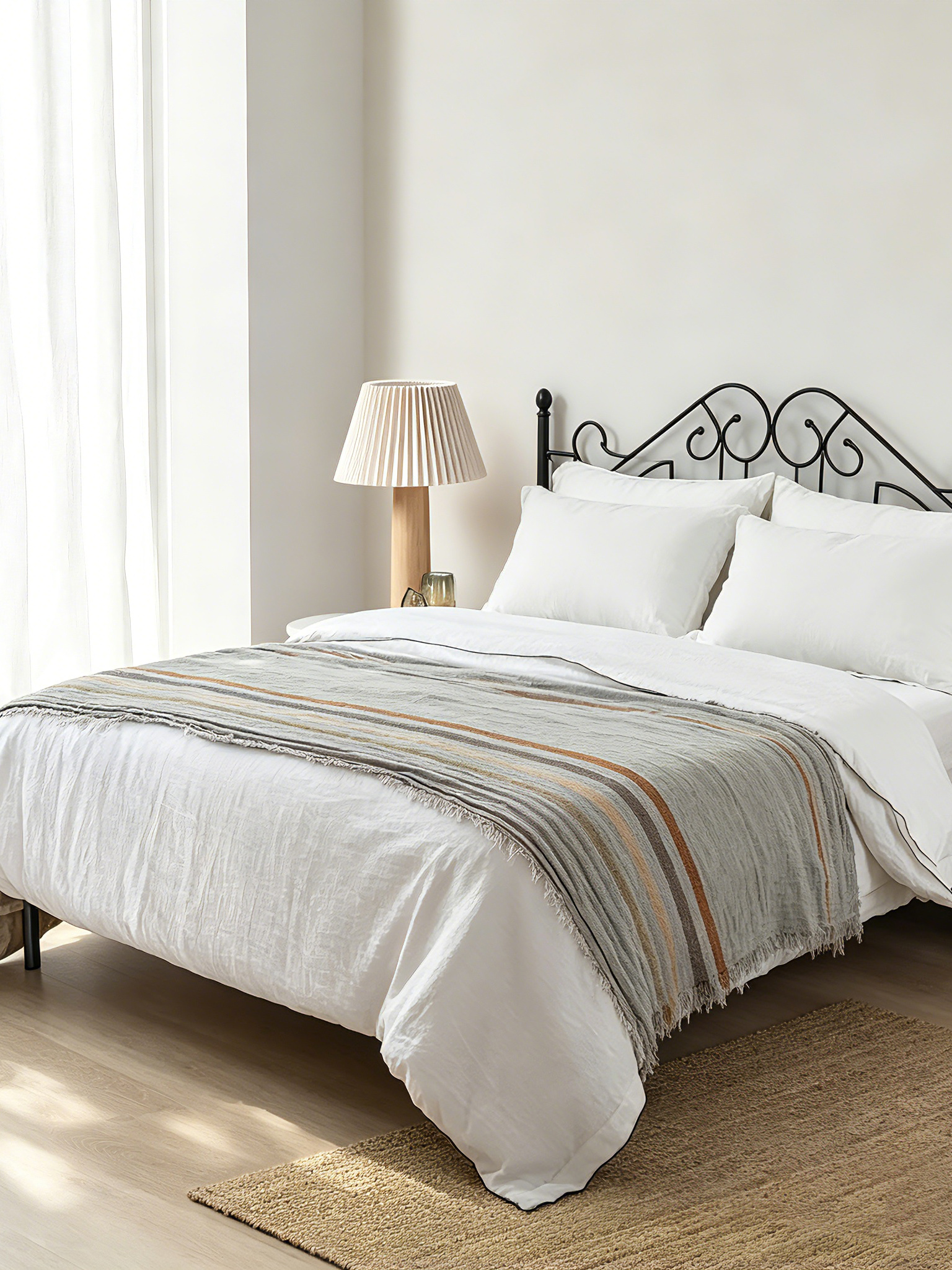 Constructed from soft, textured 3-layer linen gauze fabric, the throw is prewashed and softened through an enzyme washing process, resulting in an exceptionally smooth, relaxed texture free of scratchiness. The crinkled 3-layer gauze construction adds depth, lightness, and breathability, making it ideal for year-round use—cool and airy in summer to wick away moisture, warm and gentle in winter to add a subtle layer of comfort, and perfectly lightweight for layering on sofas, beds, and armchairs.