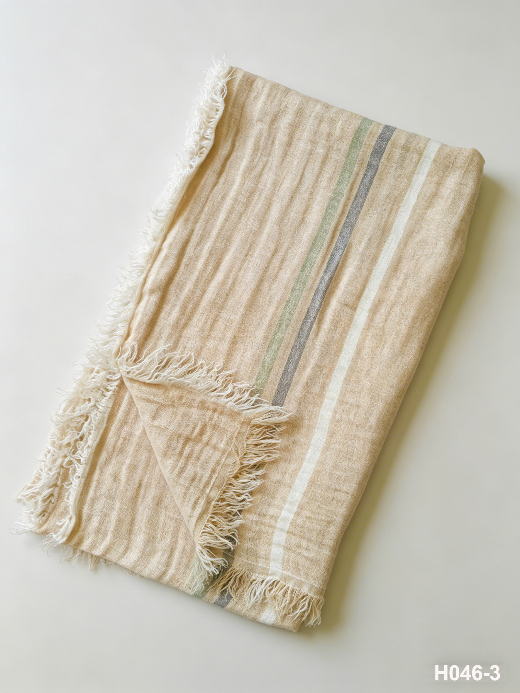 Oatmeal Random-Striped Gauze Linen Throw – Premium Coastal 3-Layer Linen Throw for Home Decor