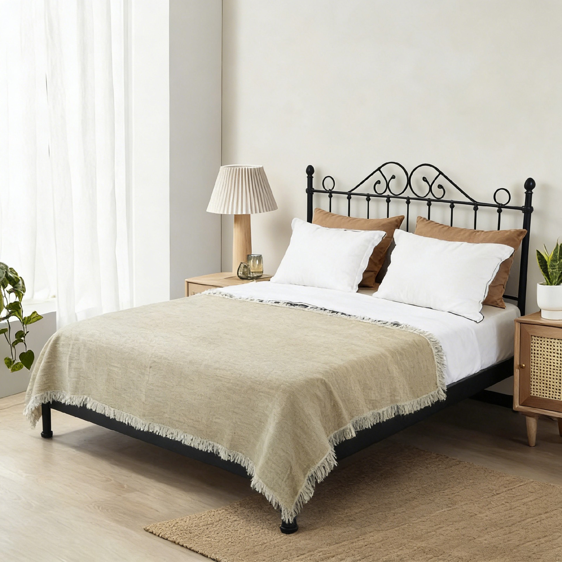 Naturally breathable, moisture-wicking, and gentle on sensitive skin, this linen and chenille throw is as practical as it is beautiful. It holds its shape beautifully through regular washes, softens even more with each use, and resists fading, ensuring long-lasting comfort and style. Whether draped over your living room sofa, layered at the foot of your bed, or used for relaxing evenings indoors, the Sage Weave Throw is the ultimate statement in cozy, elevated coastal living—blending timeless design, premium craftsmanship, and everyday functionality.