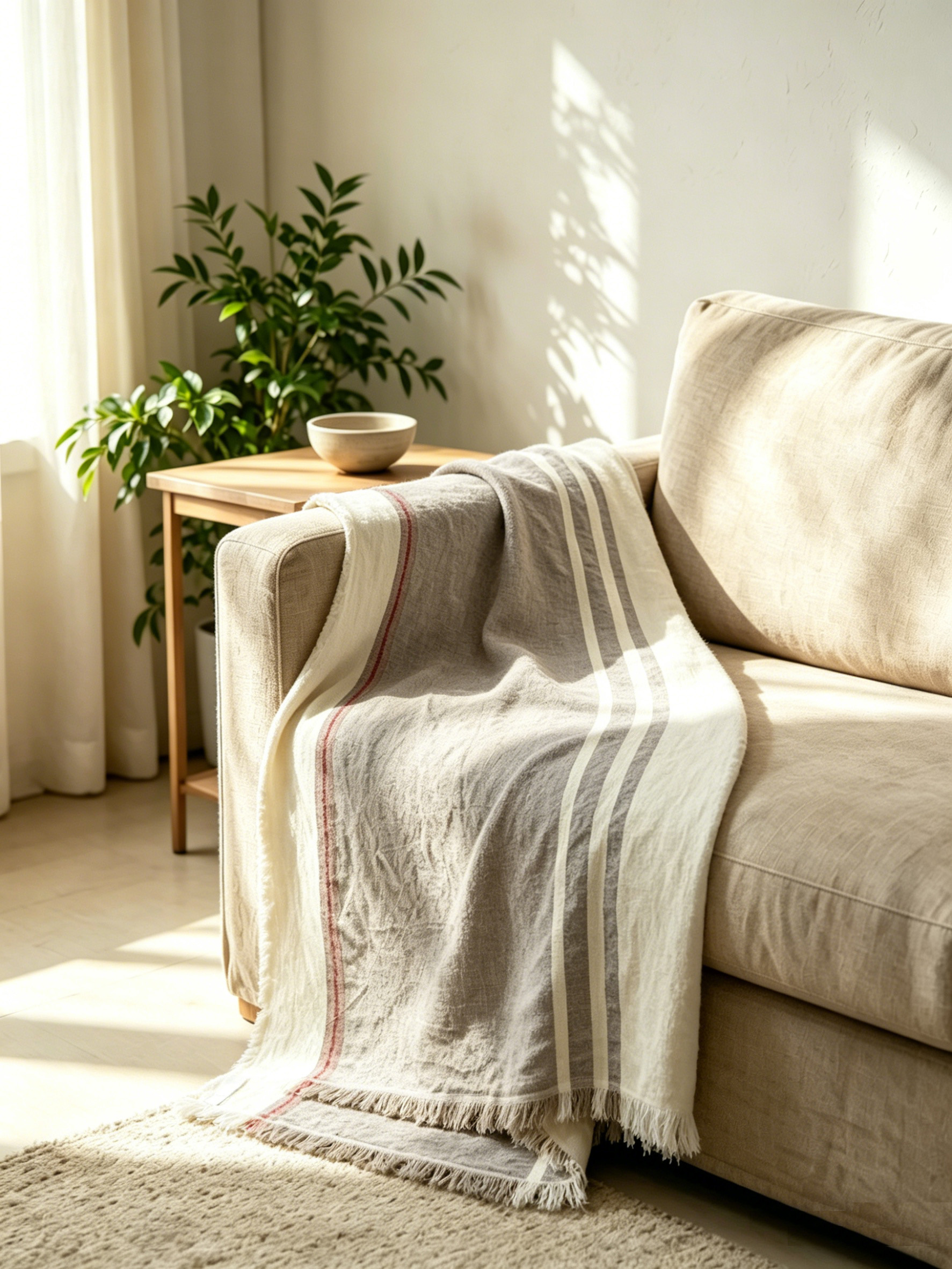 Sand Drift Linen Throw – Premium Coastal Linen Throw for Sofa Living Room Decor