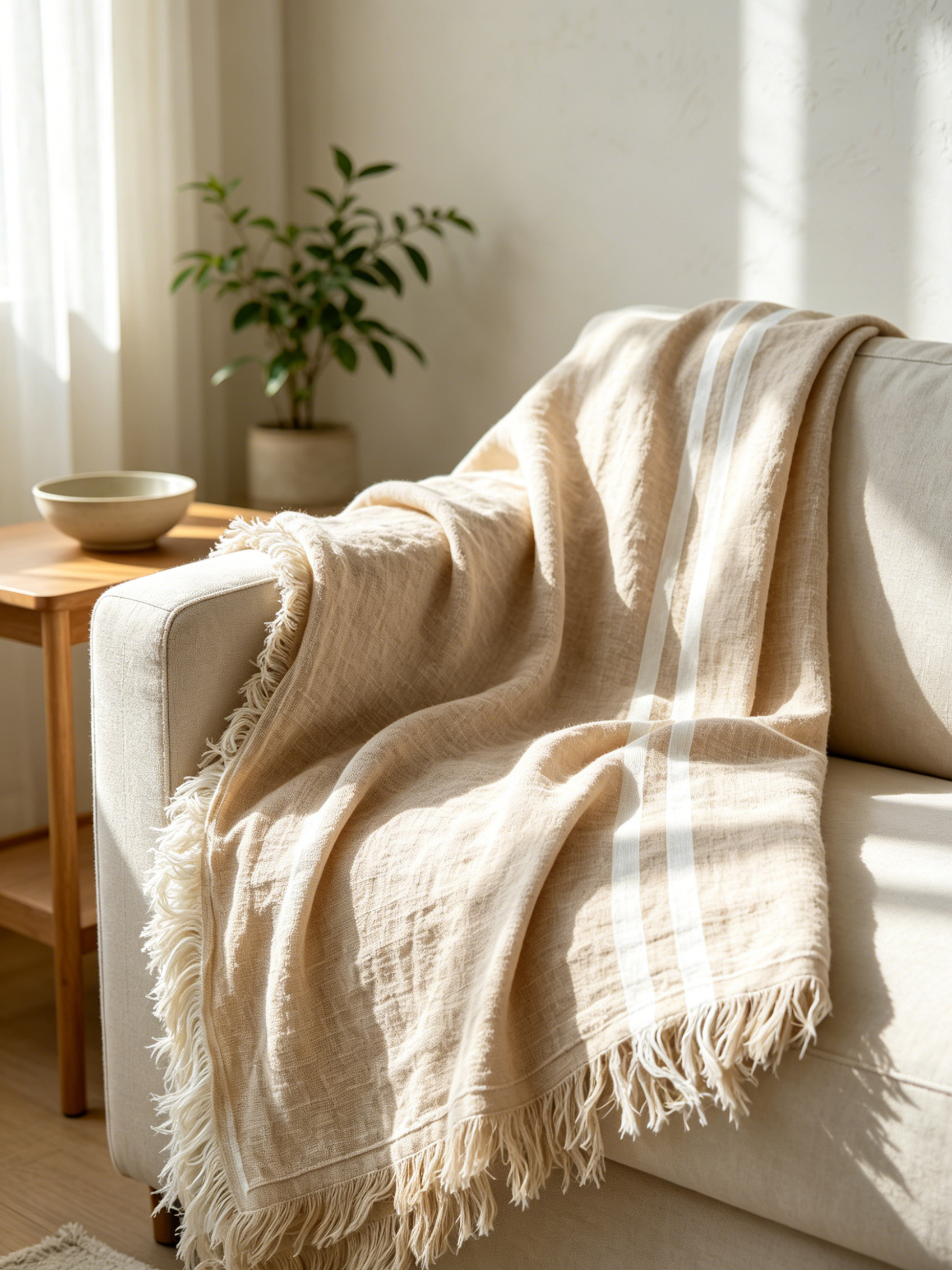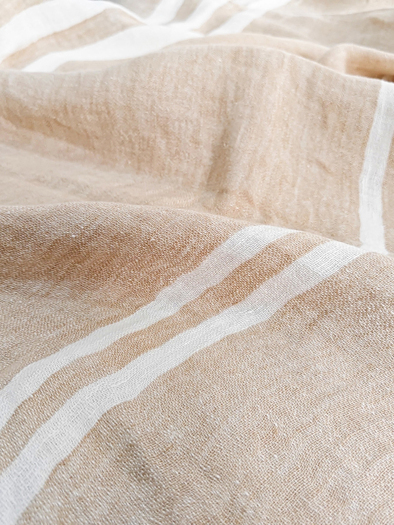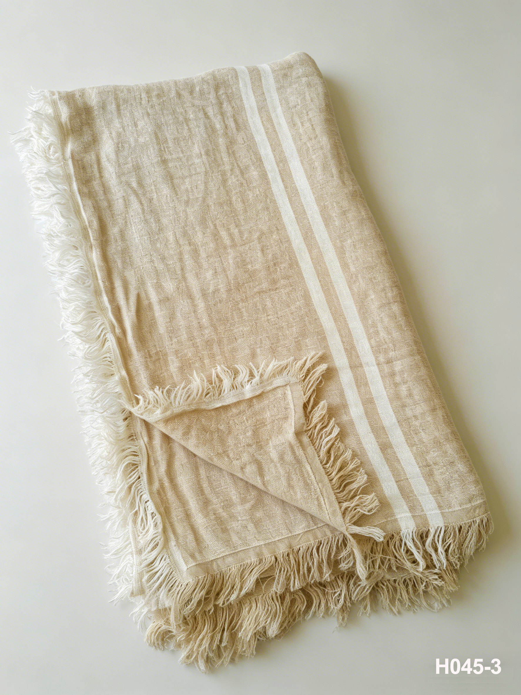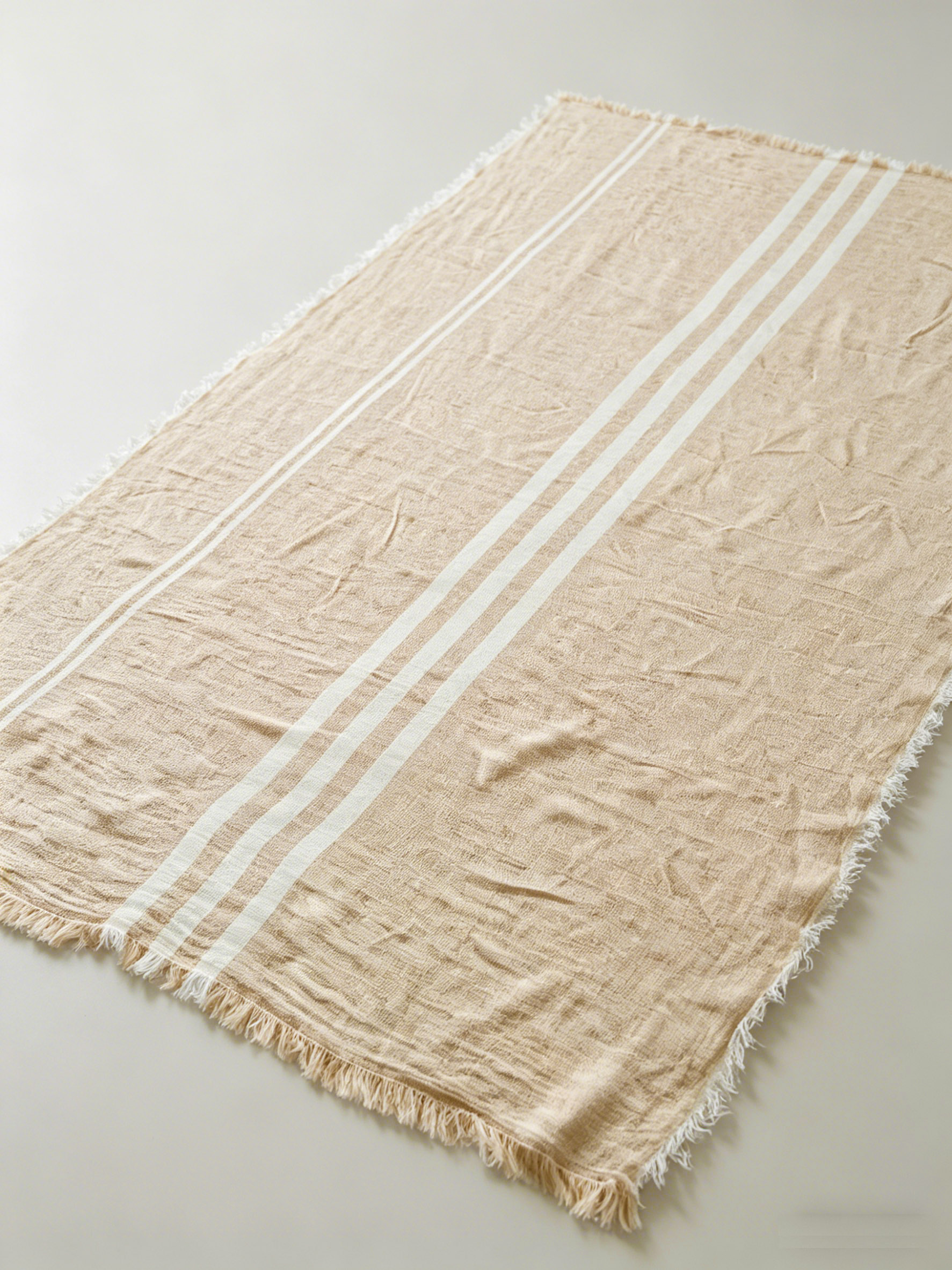 Bring the quiet, sun-warmed calm of a coastal beach to your home with the Sand Stripe Gauze Throw, a beautifully crafted coastal throw for sofa living room decor that combines premium 3-layer washed linen gauze quality. Made with a unique crinkled 3-layer linen gauze construction and washed finish, this throw delivers a lightweight yet cozy feel that elevates any living space with effortless coastal charm.