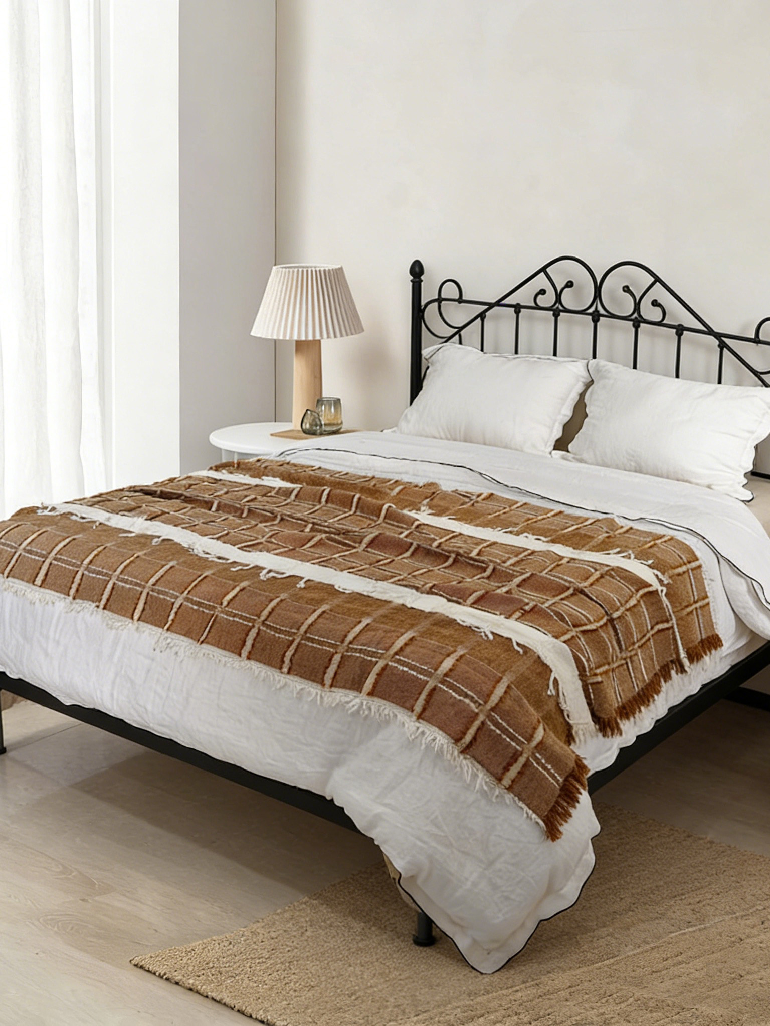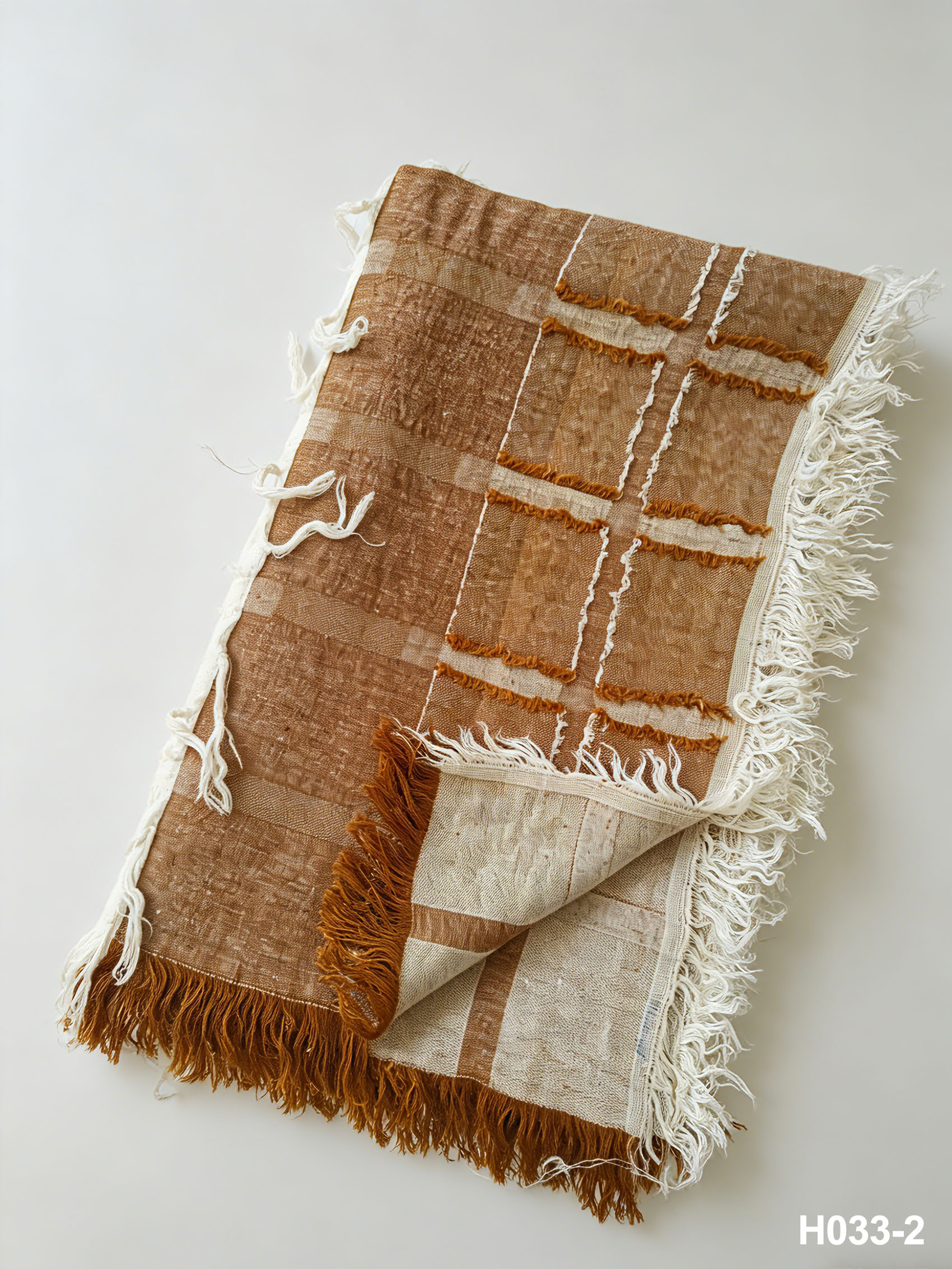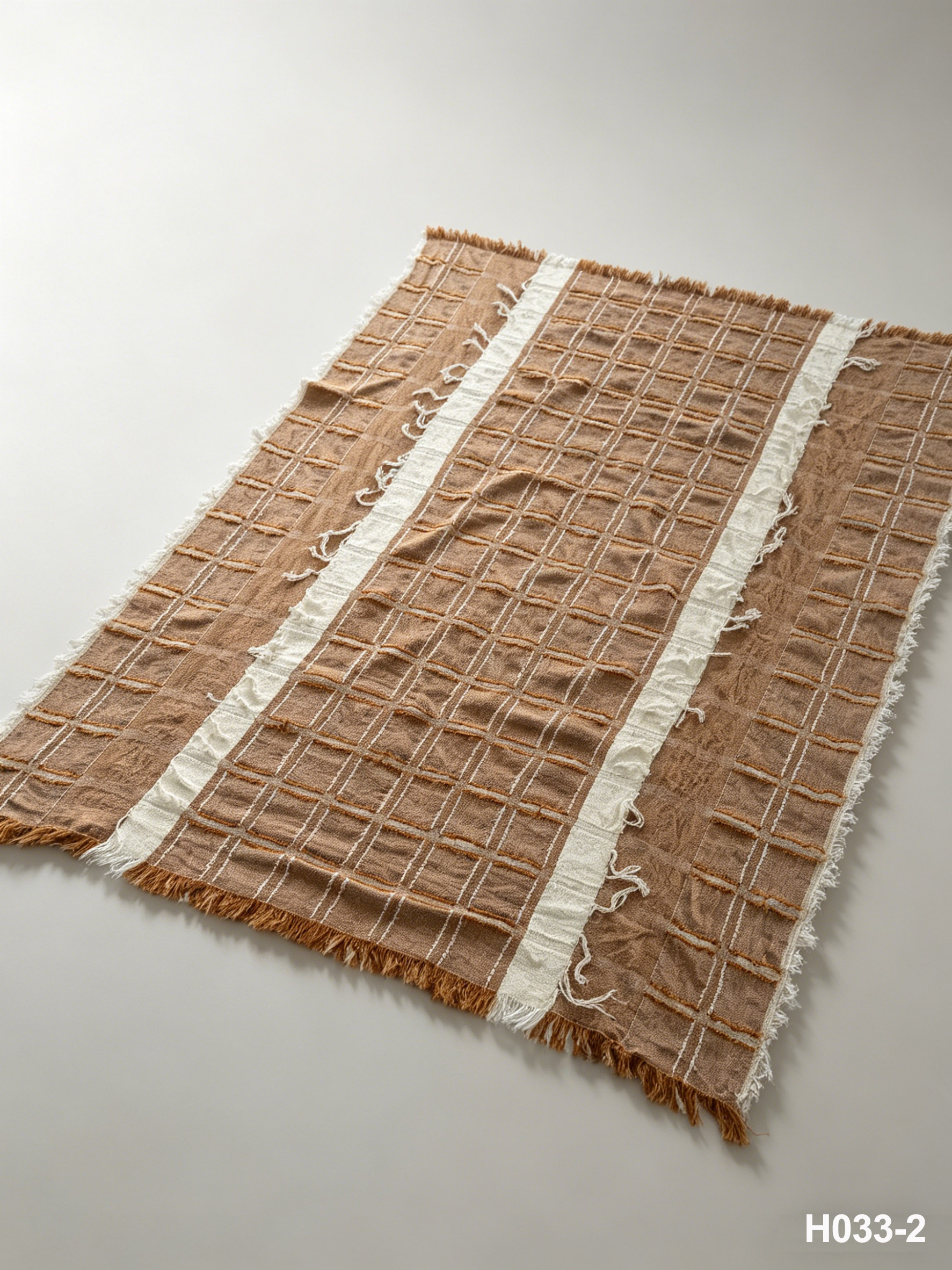The classic minimalist square cutwork pattern presents subtle embossed details, while the rich terracotta base with white stripe accents pairs perfectly with coastal, wabi-sabi, nordic, japanese, modern farmhouse and french minimalist home styles. With an elegant drape and neat workmanship, it can be draped over sofas, accent chairs, bed ends and guest rooms, ideal for daily leisure naps, air conditioning covers and high-grade home soft decoration.